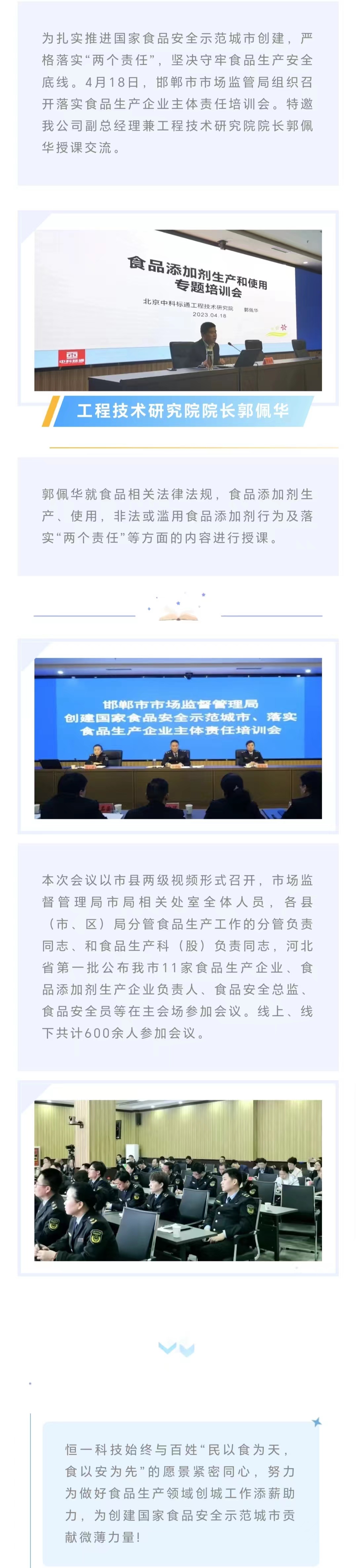 企業新聞│恒一科技應邀為創建國家食品安全示范城市、落實“兩個責任”作專題培訓